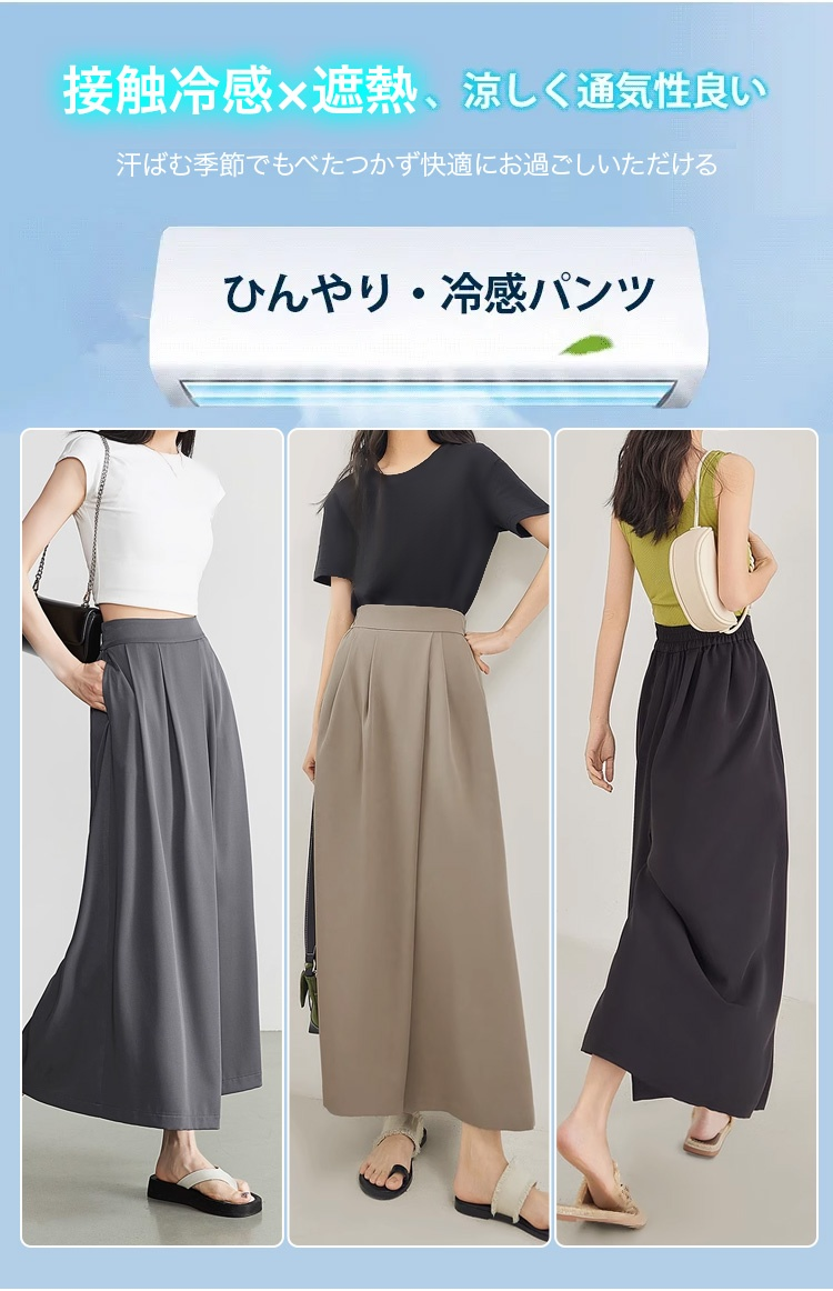 接触冷感ハイウエストガウチョパンツ